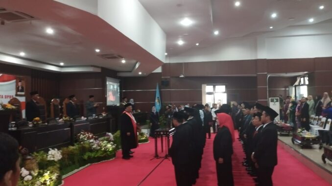 Pelantikan puluhan anggota Dewan dilaksanakan melalui rapat paripurna dengan agenda pengucapan sumpah janji Anggota DPRD Lombok Timur yang dipandu Ketua Pengadilan Negeri Selong.