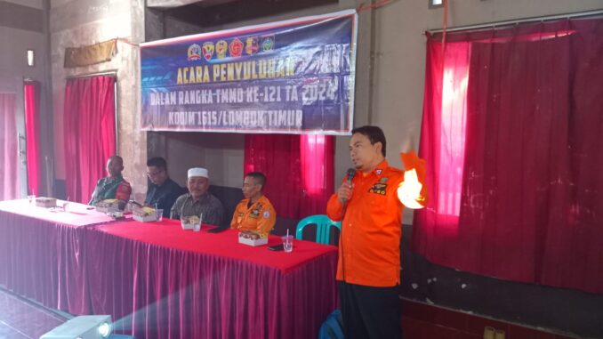 Dalam kesempatan tersebut, Kapten Inf Agil, Pasiter Kodim 1615/Lotim sekaligus Koordinator Umum TMMD ke-121, menyampaikan pentingnya penyuluhan penanggulangan bencana alam kepada masyarakat. Tujuan dari penyuluhan ini adalah agar masyarakat memahami langkah-langkah yang harus dilakukan ketika terjadi bencana alam.