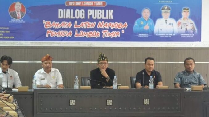 Nadi Lombok : Upaya mencegah bahaya narkoba termasuk peredarannya, Dewan Pimpinan Daerah ( DPD) II Komite Nasional Pemuda Indonesia (KNPI) bekerja sama dengan Pemerintah Daerah Kabupaten Lombok Timur menggelar Dialog Publik Bahaya Laten Narkoba Untuk Pemuda di Lombok Timur yang dilaksanakan di Rupatama II Kantor Bupati, Kamis (25/7/2024). Acara tersebut dihadiri Pj. Bupati Lotim H. M. Juaini Taofik, Kepala Bakesbangpoldagri Lotim, Jajaran Forkopimda, Kepala OPD, perwakilan Organisasi Kepemudaan (OKP) , dan Toga Toma.