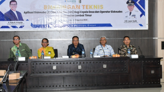 Selong, Penjabat Bupati Lombok Timur H. Muhammad Juaini Taofik mengingatkan agar seluruh kepala desa se-kabupaten Lombok Timur mengikuti bimbingan teknis aplikasi Sistem Keuangan Desa (Siskeudes) dengan sebaik-baiknya agar bisa dipahami dan diterapkan di desa masing-masing. Hal itu disampaikan saat membuka kegiatan bimbingan teknis aplikasi Siskeudes (Online, Link dan CMS) Selasa (6/8). Usai mengikuti kegiatan yang berlangsung di Rupatama 2 Kantor Bupati tersebut, diharapkan semua aparatur desa lebih memahami dan optimal dalam pengelolaan keuangan desa berbasis aplikasi Siskeudes online menuju pemerintah desa yang bersih dan transparan.