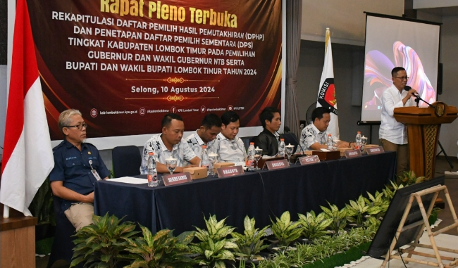 Sementara itu Ketua KPU Lombok Timur Ada Suci Makbullah, pada kegiatan yang berlangsung Sabtu (10/8) tersebut memaparkan saat ini sejumlah tahapan Pemilu tengah berlangsung, di mana salah satunya adalah pemutakhiran data pemilih. Dijelaskannya dari Data Penduduk Potensial Pemilih Pemilu (DP4) 974.932 jiwa jumlahnya menjadi lebih dari satu juta jiwa. Anmun demikian setelah adanya proses klinis angkanya menjadi 995.477 dengan jumlah TPS 1.912 ditambah satu TPS khusus. Jumlah itu bertambah 16 TPS dari sebelumnya. Ditambahkannya, usai pleno hari ini jumlah pemilih dapat berkurang atau bertambah seiring masukan, saran, dan perbaikan yang diajukan.